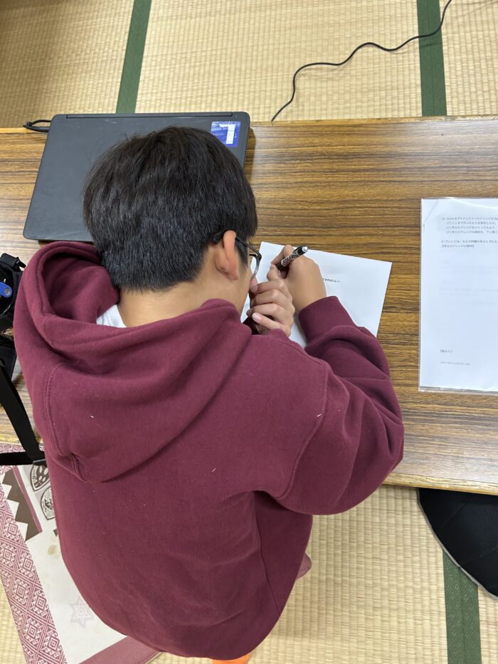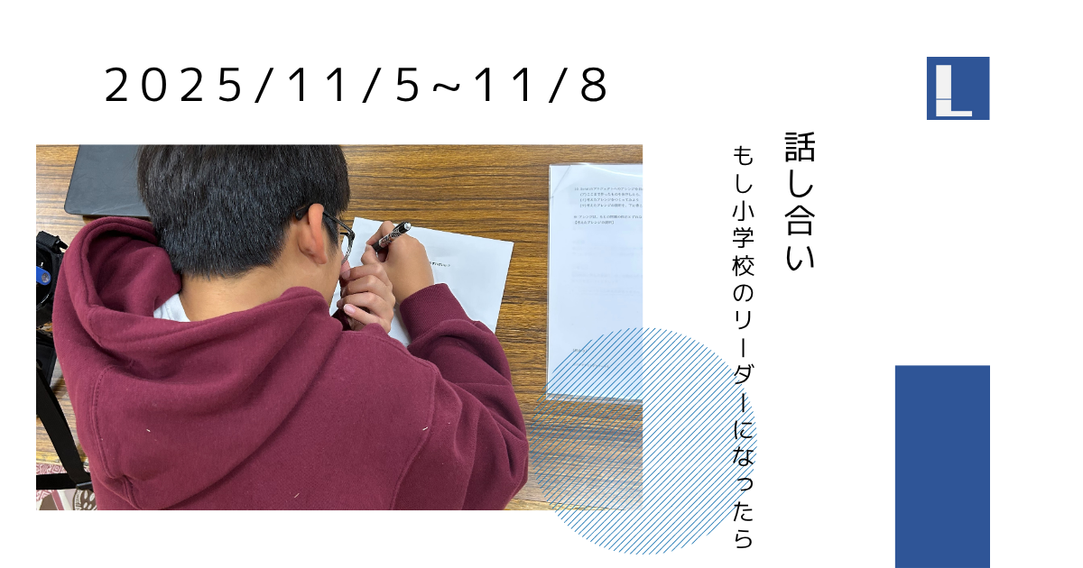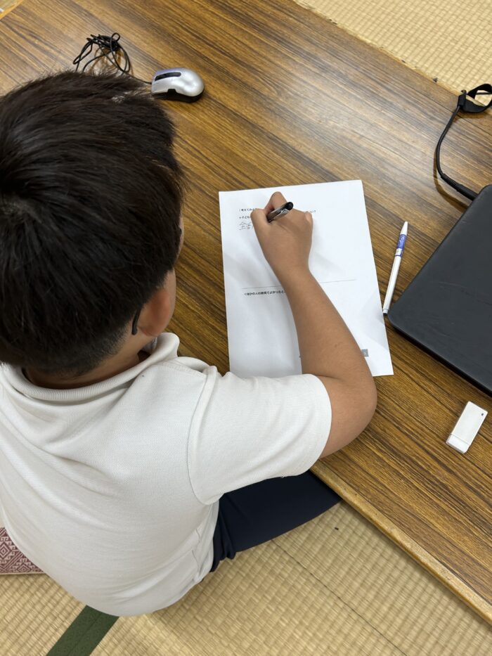 今週は「もし小学校のリーダーになったら」というテーマで、より充実した学校生活にするための策を考え、その策に対して障壁はないか、もしあるならその障壁に対してどんな策が打てそうか、をみんなで考え、話し合いを行いました。