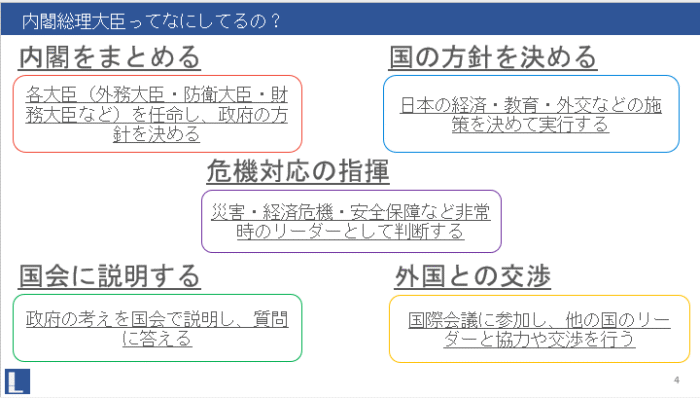 さらに、内閣総理大臣は何をしている方なのかも簡単ですが勉強しましたよ!
