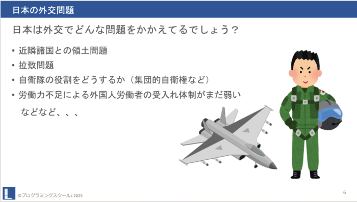 そんな中、今の日本が抱えている外交問題についても少し触れました。