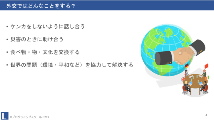 ニュースでみたことある!とみんなの身近なところにも外交が関係していることに気づいてくれましたよ。