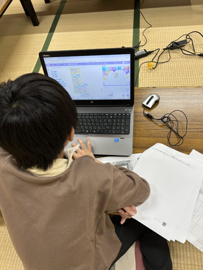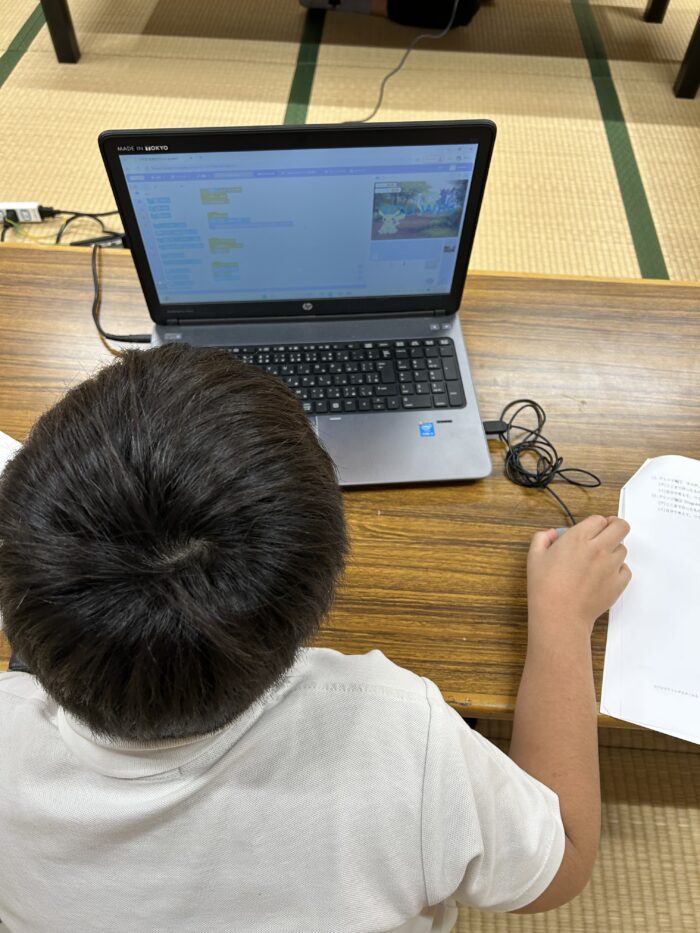 Scratchを用いたプログラミングの様子(モクモクタイム)