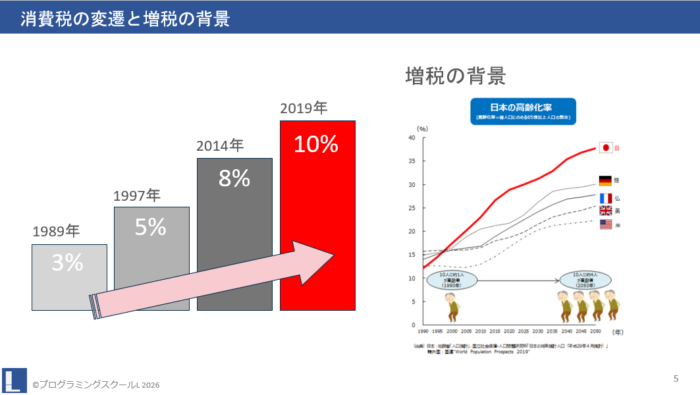 またその消費税は何に使われているのか、そして、ここ数年の消費税の変遷もあわせて説明しました。