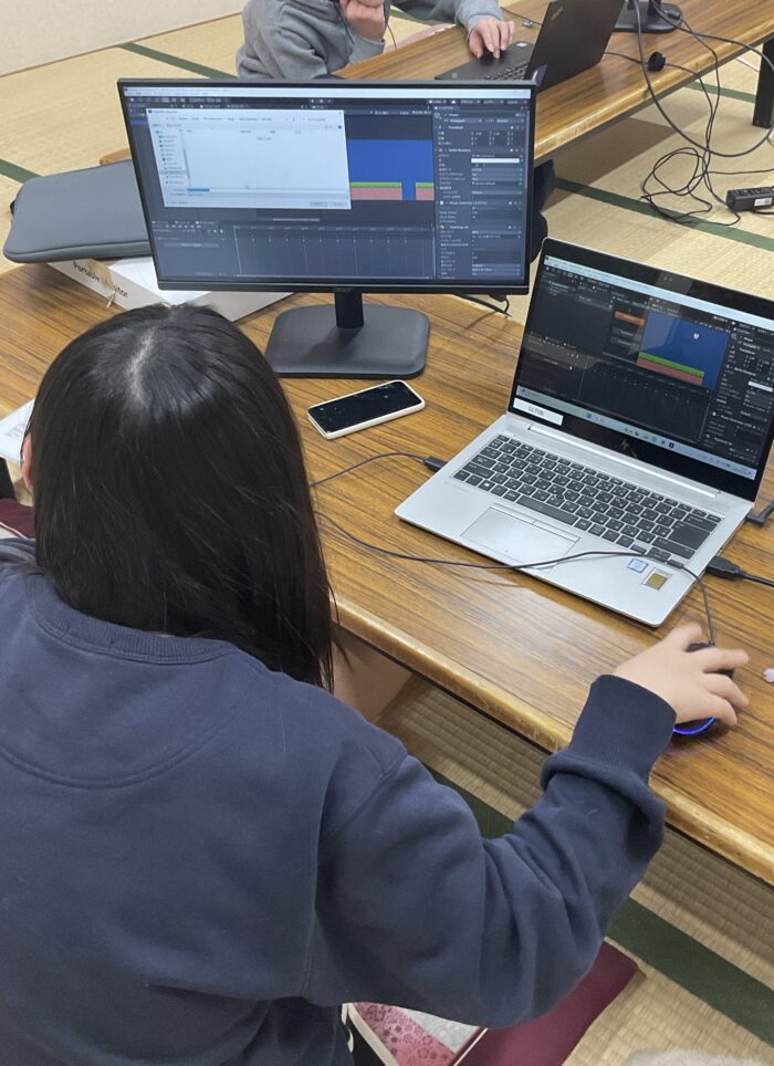 「音量でジャンプするプログラム」をテーマにプログラミングを行いました。