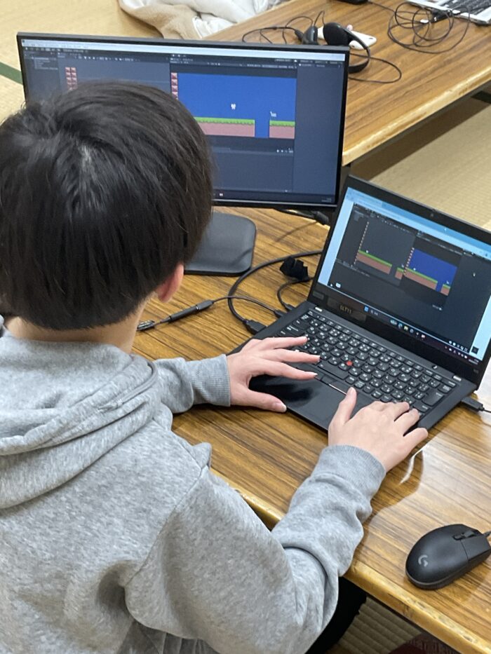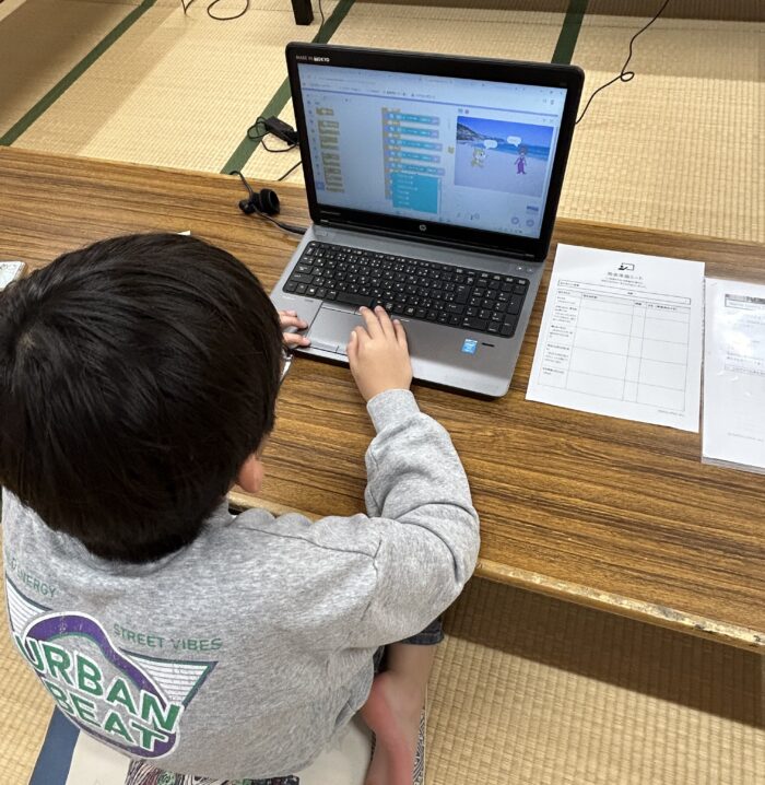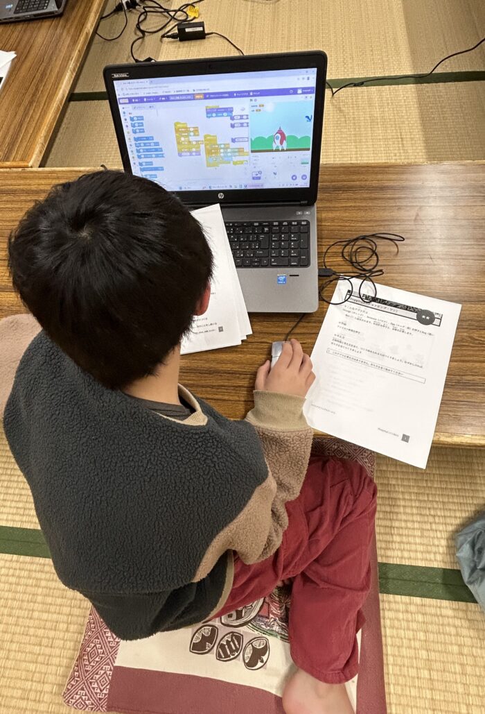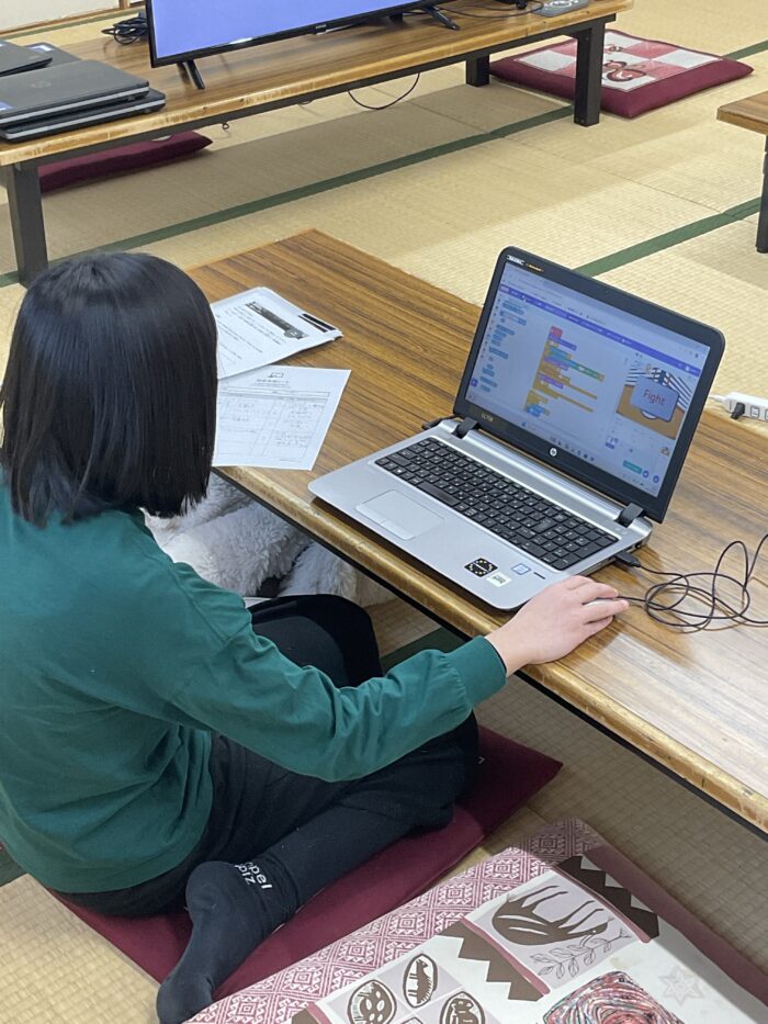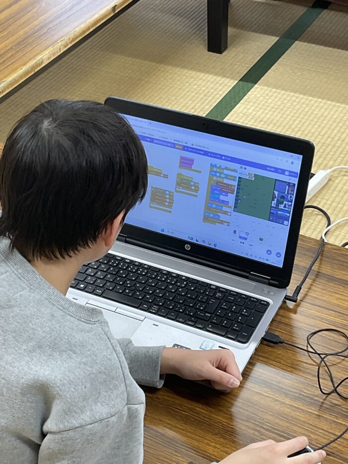 Scratchを用いたプログラミングの様子(モクモクタイム)
